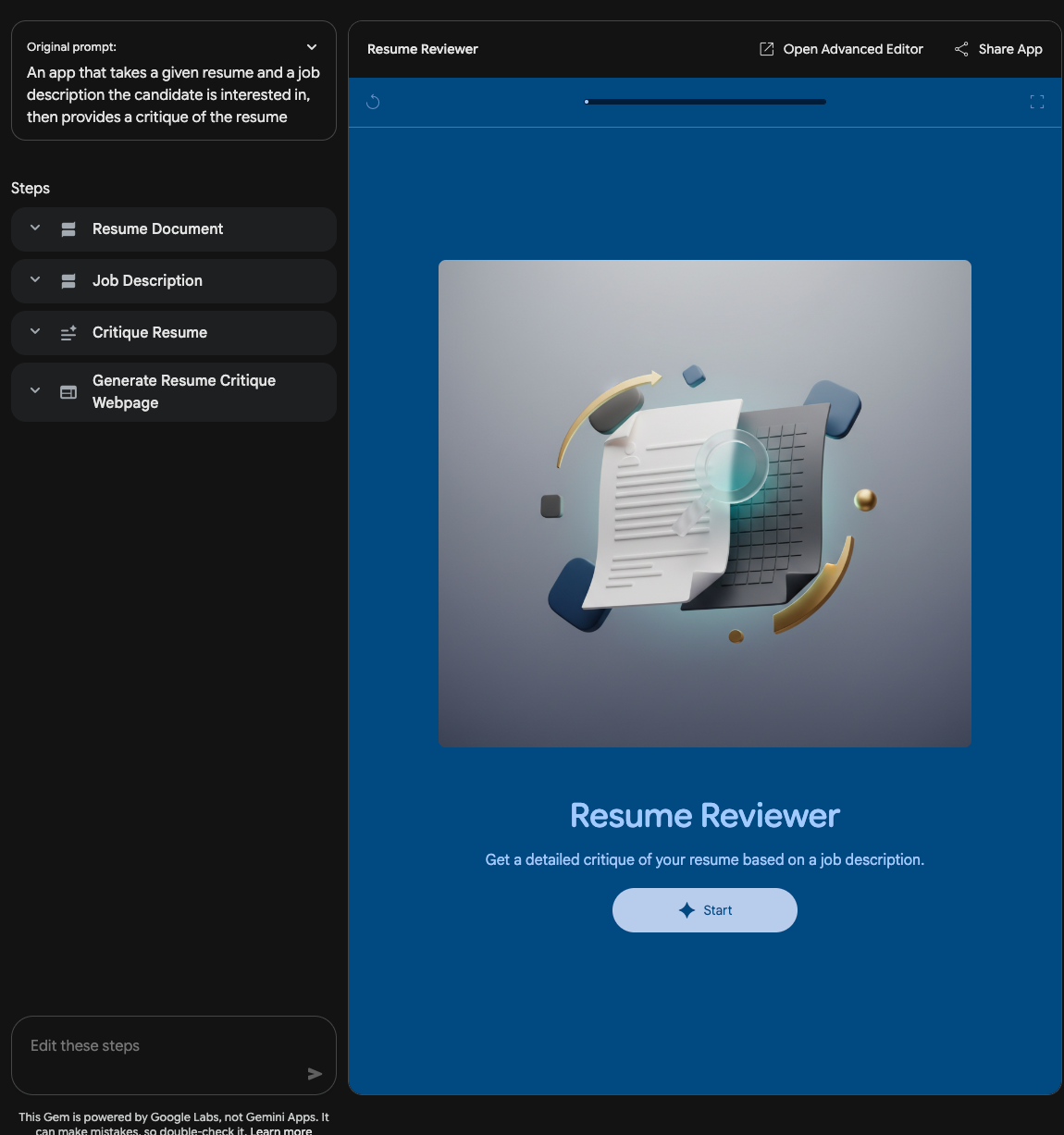 - 應用程式視圖: 這是乾淨的、面向終端用戶的介面。它隱藏了提示詞和邏輯,只顯示輸入欄位和結果。這種關注點分離對於企業用例至關重要,因為管理者可能希望員工 使用 工具,而不必讓他們理解背後的 提示工程4。